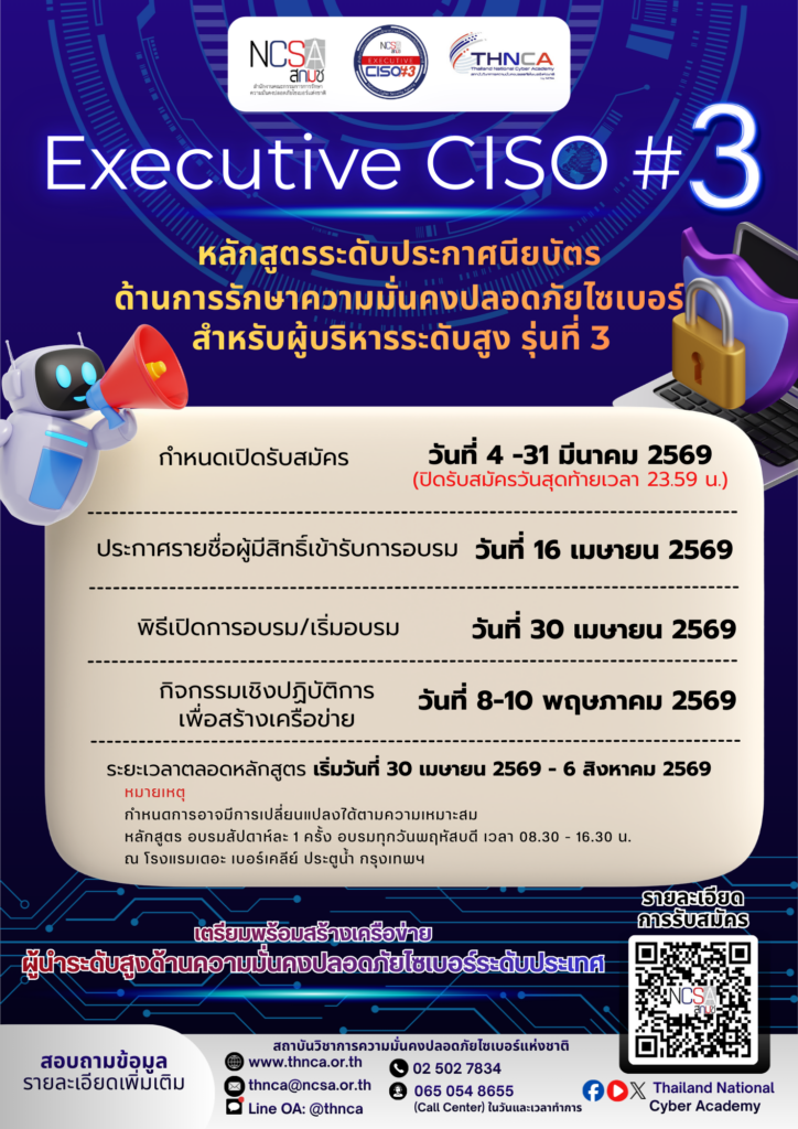 หลักสูตรประกาศนียบัตรด้านความมั่นคงปลอดภัยไซเบอร์ สำหรับผู้บริหารระดับสูง รุ่น 3