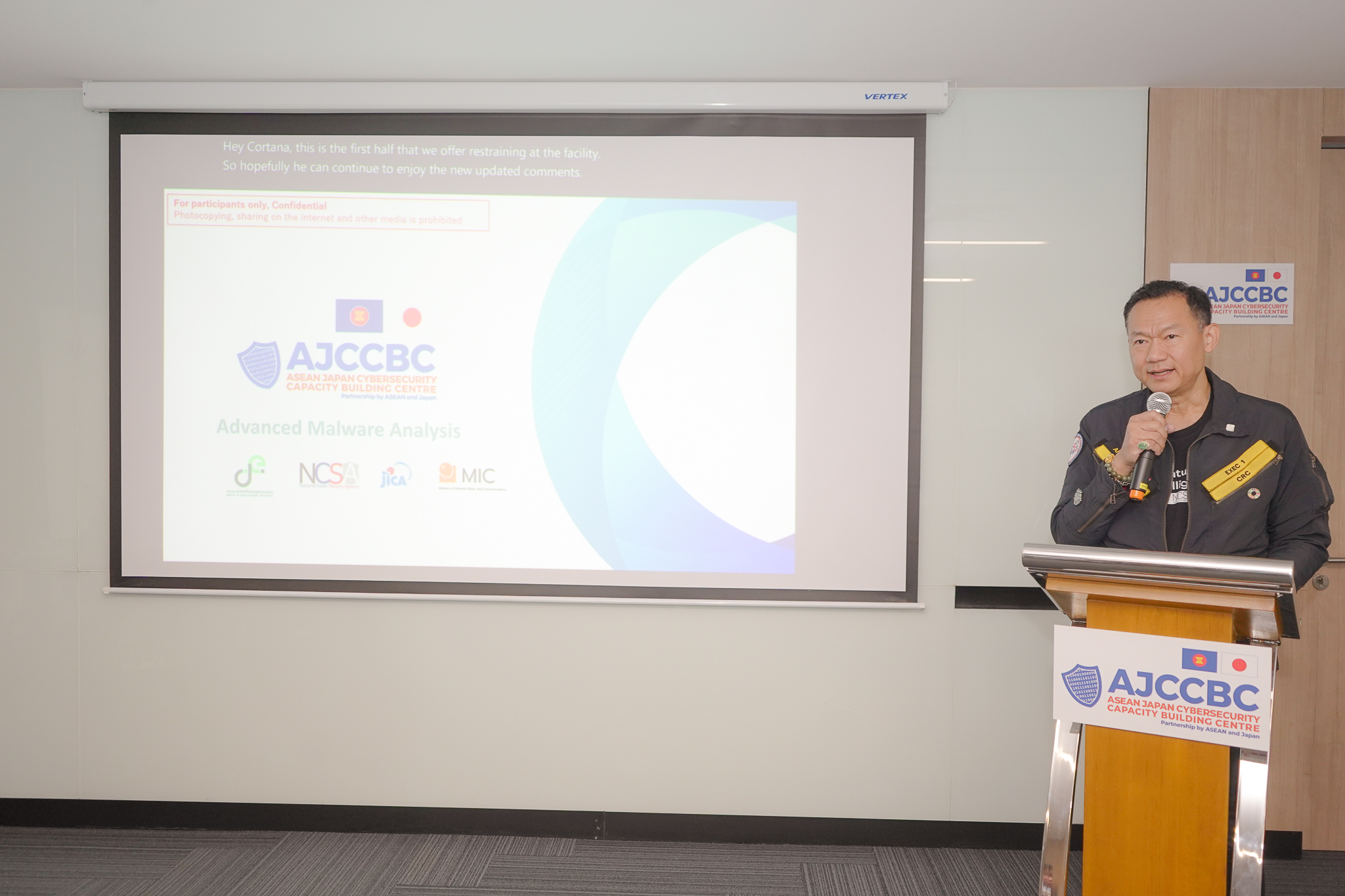 สำนักงานคณะกรรมการการรักษาความมั่นคงปลอดภัยไซเบอร์แห่งชาติ (สกมช.) ร่วมกับ ASEAN-Japan Cybersecurity Capacity Building Centre (AJCCBC) จัดการอบรมดังกล่าว โดยมุ่งเน้นการพัฒนาความรู้และทักษะของบุคลากรด้านไซเบอร์ในภูมิภาคอาเซียน ให้ผู้เข้าร่วมได้รับองค์ความรู้ด้านการตรวจวิเคราะห์มัลแวร์ (Malware Analysis) ในระดับสูง เพื่อเสริมสร้างสมรรถนะและศักยภาพของผู้เชี่ยวชาญด้านความมั่นคงปลอดภัยไซเบอร์ให้ก้าวทันความท้าทายในยุคปัจจุบัน และสามารถนำความรู้ไปเผยแพร่ให้กับหน่วยงานต่าง ๆ ในประเทศของตนเอง อีกทั้งยังถือเป็นโอกาสอันดีในการสร้างเครือข่ายและความสัมพันธ์ระหว่างประเทศ โดยการอบรมจัดขึ้นระหว่างวันที่ 24 – 28 พฤศจิกายน 2568 ณ ห้องฝึกอบรม AJCCBC ชั้น 8 สกมช.