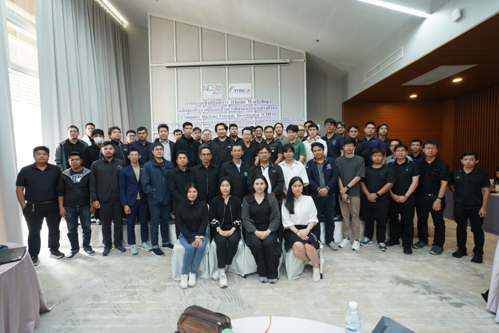 สถาบันวิชาการความมั่นคงปลอดภัยไซเบอร์แห่งชาติ (THNCA) ภายใต้ สกมช. จัดอบรมเชิงปฏิบัติการ หลักสูตรประกาศนียบัตรด้านการพิสูจน์หลักฐานทางดิจิทัล (Computer Hacking Forensic Investigator: CHFI) เพื่อพัฒนาบุคลากรและวิทยากรด้านความมั่นคงปลอดภัยไซเบอร์ให้เทียบเท่ามาตรฐานสากล ระหว่างวันที่ 11 – 13 ธันวาคม 2568 ณ โรงแรม ทีเค.พาเลซ แอนด์ คอนเวนชั่น กรุงเทพมหานคร การอบรมครั้งนี้ มีผู้เข้าร่วมจำนวน 50 ท่าน ซึ่งเกิดจากการบูรณาการความร่วมมือจากหลากหลายภาคส่วน อาทิ หน่วยงานควบคุมหรือกำกับดูแล (Regulator), หน่วยงานโครงสร้างพื้นฐานสำคัญทางสารสนเทศ (CII), หน่วยงานภาครัฐ และเอกชน เพื่อร่วมกันยกระดับศักยภาพบุคลากรด้านความมั่นคงปลอดภัยไซเบอร์ของประเทศ