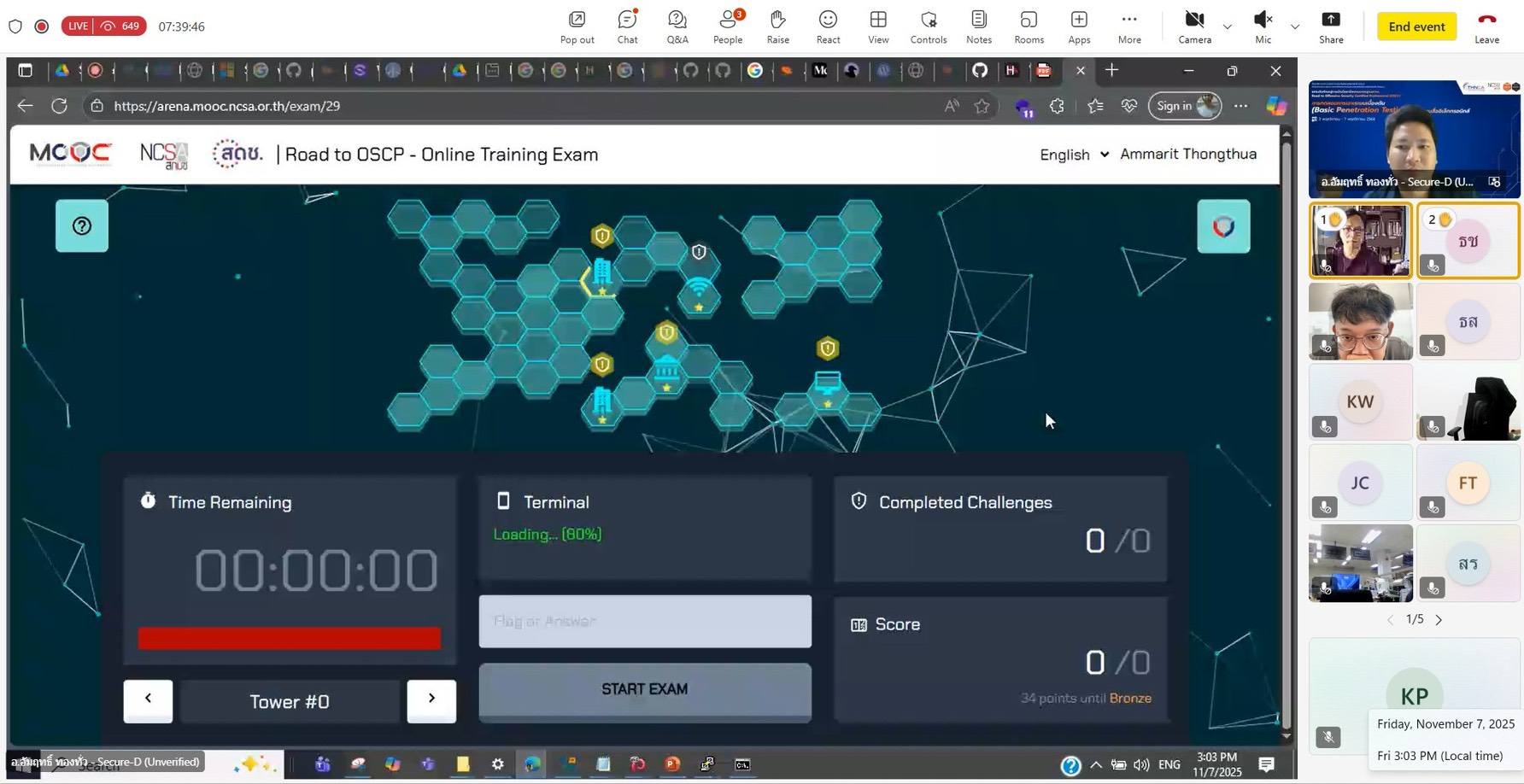 เมื่อวันที่ 3-7 พฤศจิกายน 2568 สถาบันวิชาการความมั่นคงปลอดภัยไซเบอร์แห่งชาติ ได้ดำเนินการจัดการอบรมและทดสอบหลักสูตรการทดสอบการเจาะระบบเบื้องต้น (Basic Penetration Testing) รอบที่ 1 ภายใต้กิจกรรมพัฒนาบุคลากรด้านการตรวจสอบความมั่นคงปลอดภัยไซเบอร์และทดสอบเจาะระบบระดับสูง (Offensive Security Certified Professional : OSCP) โดยเป็นการทดสอบเจาะระบบผ่านระบบ NCSA MOOC เป็นไปอย่างราบรื่นและบรรลุวัตถุประสงค์ตามเป้าหมาย บรรยากาศการสอบเต็มไปด้วยความตั้งใจและความมุ่งมั่นของผู้เข้าร่วม ซึ่งได้เรียนรู้ ฝึกฝน และพัฒนาทักษะการทดสอบเจาะระบบอย่างเข้มข้นตลอดระยะเวลาการอบรม