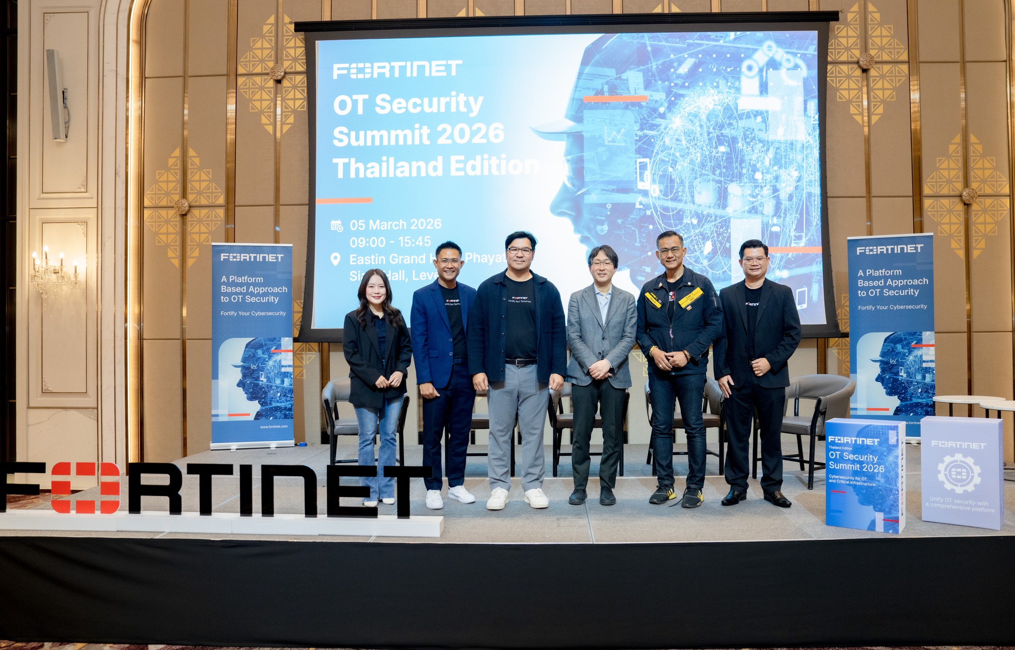 พลอากาศตรี อมร ชมเชย เลขาธิการคณะกรรมการการรักษาความมั่นคงปลอดภัยไซเบอร์แห่งชาติ ร่วมแลกเปลี่ยนความรู้ มุมมองและแนวทางการปฏิบัติด้านความมั่นคงปลอดภัยไซเบอร์สำหรับระบบ OT ผ่านการเสวนาหัวข้อ How to Standardizing OT Security in Industry 5.0 ในงาน Fortinet OT Security Summit 2026-Thaiand Edition เมื่อวันพฤหัสบดีที่ 5 มีนาคม 2569 ณ Siam Hall ชั้น 6 Eastin Grand Hotel Phayathai โดยเน้นย้ำถึงการเตรียมความพร้อมรับมือและรู้เท่าทันภัยไซเบอร์ที่อาจเกิดขึ้นจากช่องโหว่ของการใช้งานระบบ OT รวมถึงการปรับความคิดและความเชื่อที่ว่าระบบ OT จะไม่โดนโจมตีจากผู้ประสงค์ร้าย และการมีภาษากลางที่เป็น 1 ในปัจจัยสำคัญของการสื่อสารและการขับเคลื่อนการทำงานระหว่างผู้ปฏิบัติงานด้าน IT OT และระดับผู้บริหาร อีกทั้งการจัดทำ OT Security Guideline ร่วมกันระหว่าง สกมช. และภาคีเครือข่าย ที่จะช่วยให้หน่วยงานต่าง ๆ สามารถทำงานได้ง่ายขึ้นและช่วยแก้ปัญหาที่จะเกิดขึ้นในระดับประเทศได้ โดยได้กล่าวว่า “เรื่อง OT ให้มองเสมือนแผนที่ที่มีเข็มทิศและเราต้องรู้ว่าเราอยู่ตรงไหนของแผนที่นั้นเพราะแต่ละหน่วยงานมีบริบทที่ต่างกัน เมื่อมองเห็นจุดยืนของตนเองจะทำให้เข้าใจและรู้วิธีการปรับใช้ตามบริบทและนโยบายของหน่วยงาน ฉะนั้นการมี Guideline จะช่วยให้หน่วยงานสามารถวิเคราะห์ กำหนดทิศทางและวางแผนการปฏิบัติงานให้สอดคล้องกับแนวปฏิบัติได้อย่างเหมาะสม”